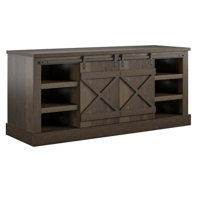 A brilliant rendition of modern farmhouse style (sliding barn doors and all), the carynhurst tv stand is right in tune with your richly relaxed sense of style. Antiqued gray metal hardware is a sophisticated complement. So when shopping for a 55 inch tv stand, you. Its extra wide design captivates with two spacious double door cabinets. Simply measure your television and then shop by stand size to make your purchase as simple as possible.